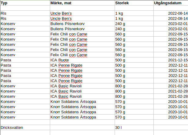 Inventerade matförrådet. Klarar mig minst 2 veckor…